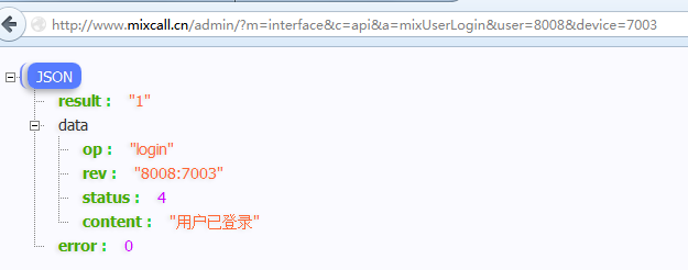 http://www.mixcall.cn/admin/?m=interface&c=api&a=mixUserLogin&user=6203&device=1001